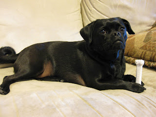 Okay, so Christmas is over...so is the New Year...we've just had Valentine's, now what? (Of course Bruschi...I will be your Puggletine!) It is back to work. My new job for the season is to learn how to hide my eyes. Mama have been trying to get me to do this trick for the last 2 weeks, and I'm not getting it...at least I've convinced her that I am not getting it. It is my sneaky way of getting more treats since she is soooo determined to teach me to "hide my eyes." All I really rather do is chew on my bone!