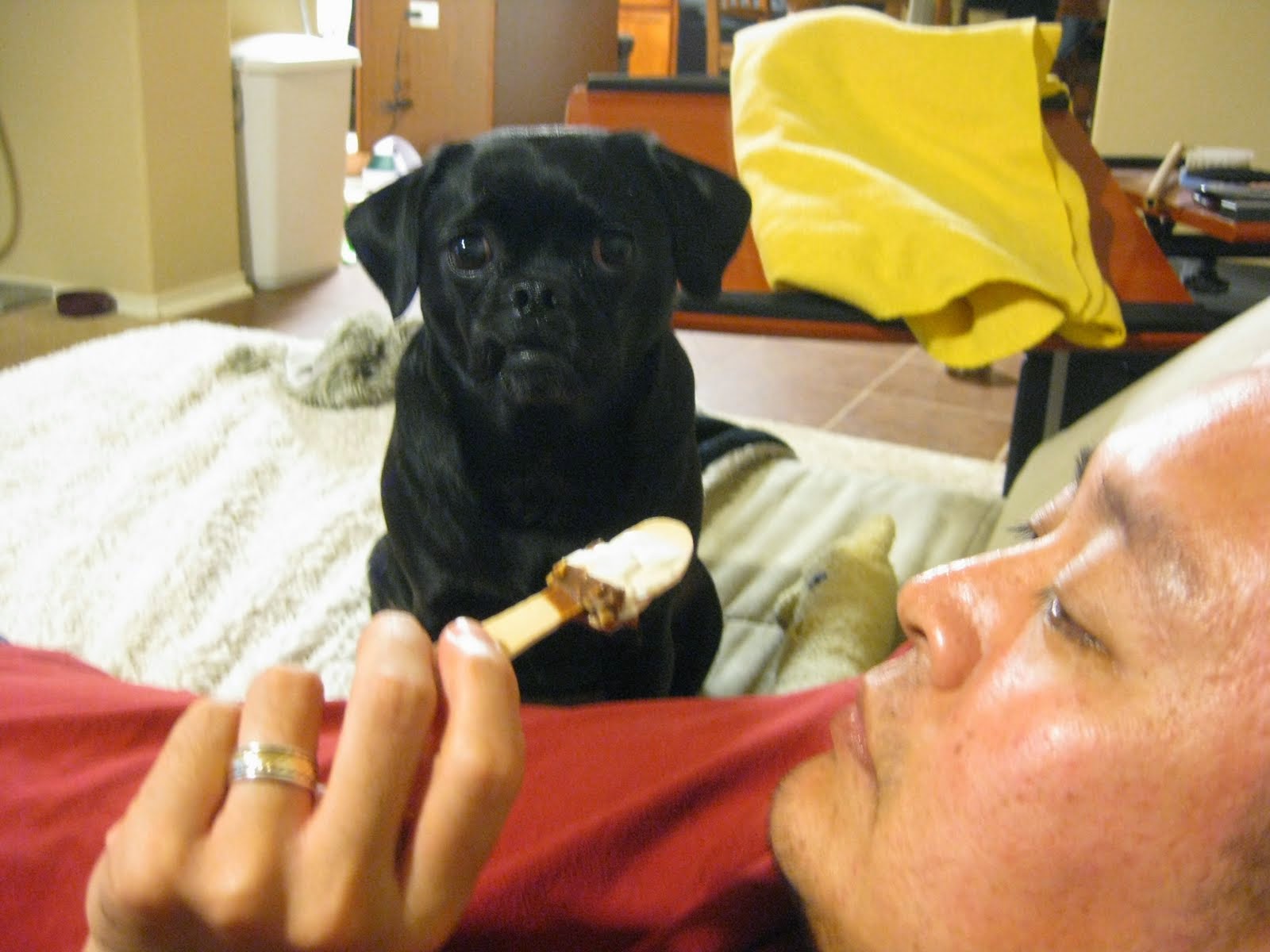 I woke up this morning and I could smell it in the air that something was not quite like my usual morning. As usual, the first thing I do when I get up is to go outside to do my business! Damp, white and freezing is what I felt under my paws!