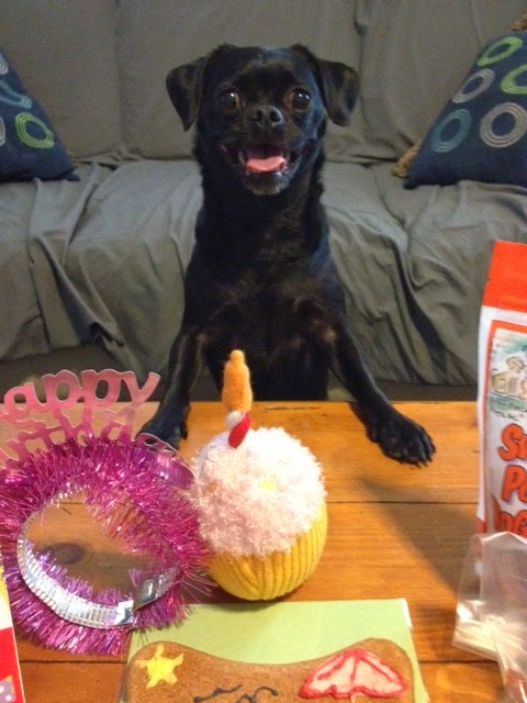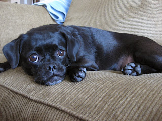 Bruschi the Puggle ! Everything was delish! My roommate Susie was so jealous, she stole a Candy Cane rawhide from the coffee table and ate it all in her kennel. I was planning on sharing, but I wasn't expecting to have it stolen! Thank you Bruschi and Ebby!!!!.....Christen too!